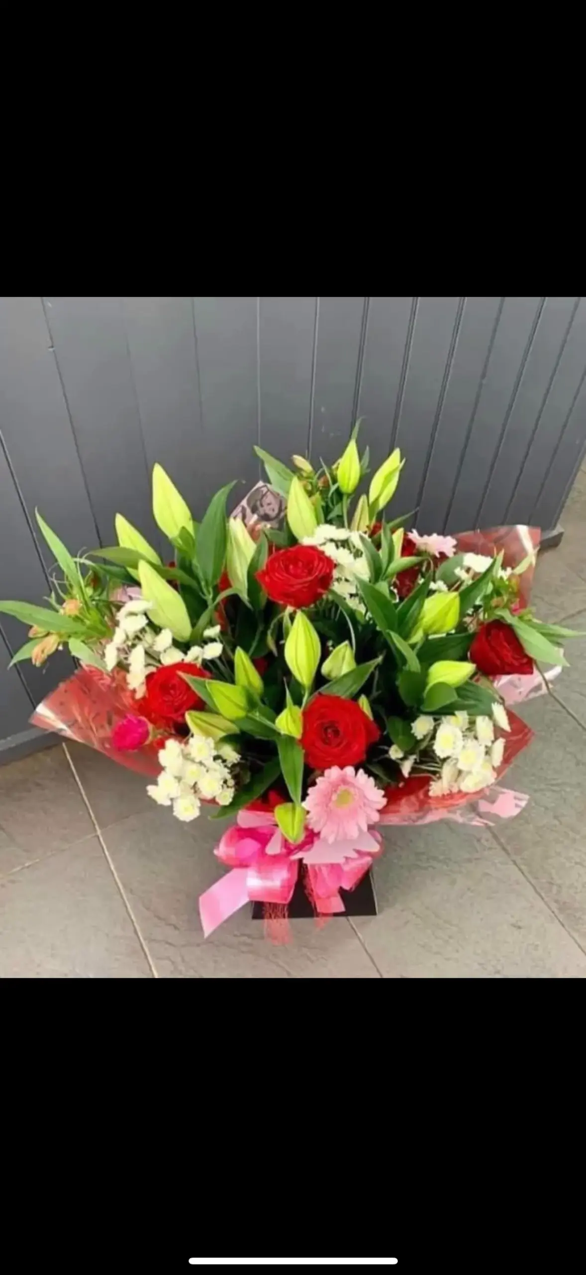 A selection of fresh flowers including Lillies, Roses, Gerberas, Bamboo, Eucalyptus, Stallion
